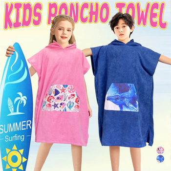 Logotipo personalizado Confortável Microfibra Suave Rapidamente Secar Crianças Com Capuz Toalha de Praia Natação Surf Poncho Capa Infantil